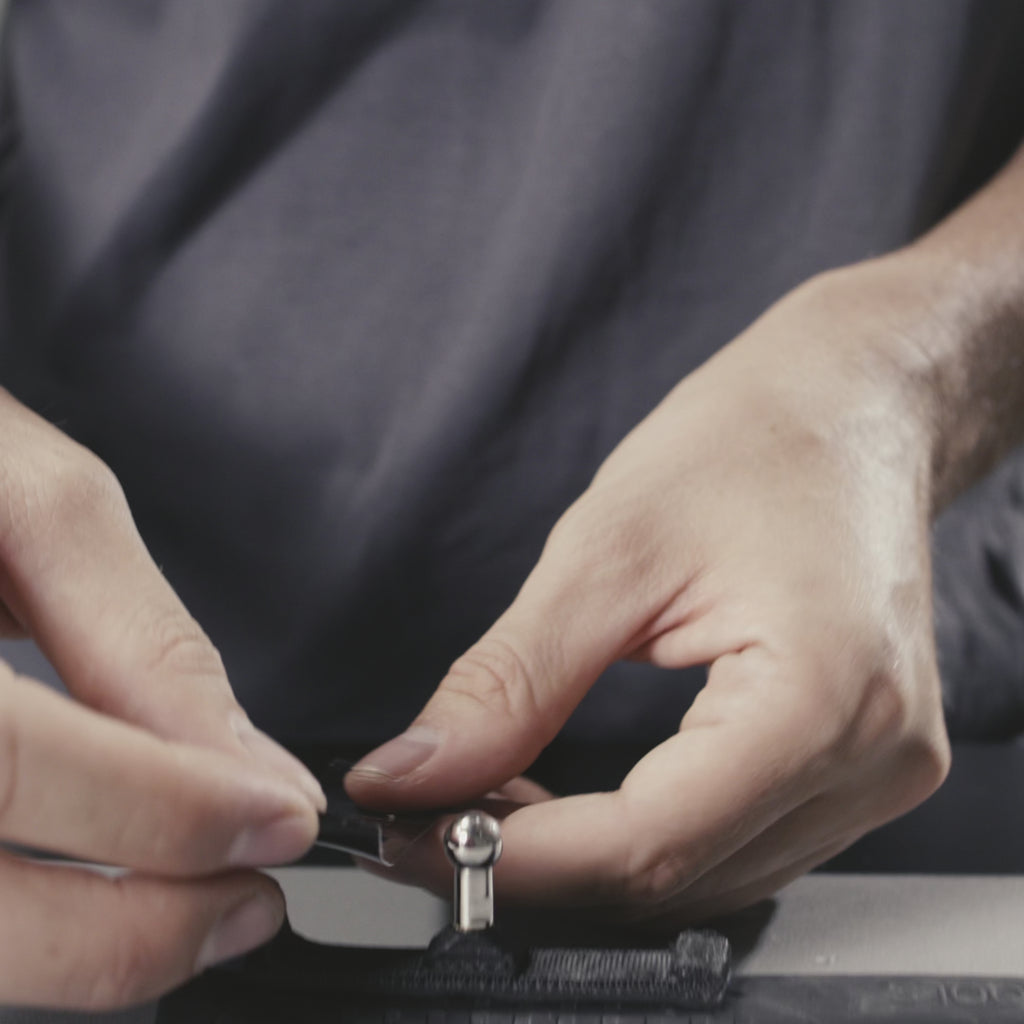Funktion 2: Sicherungs-Schnalle: Das andere Ende des Adapters dient als direktes Gegenstück für die Schnalle der REELOQ-Werkzeugsicherung. Es schafft einen stabilen Verbindungspunkt, der Ihr Werkzeug zuverlässig vor dem Herunterfallen schützt.